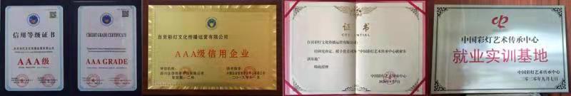 2020年9月,中國(guó)彩燈藝術(shù)傳承中心授予公司“中國(guó)彩燈藝術(shù)傳承中心就業(yè)實(shí)訓(xùn)基地”。